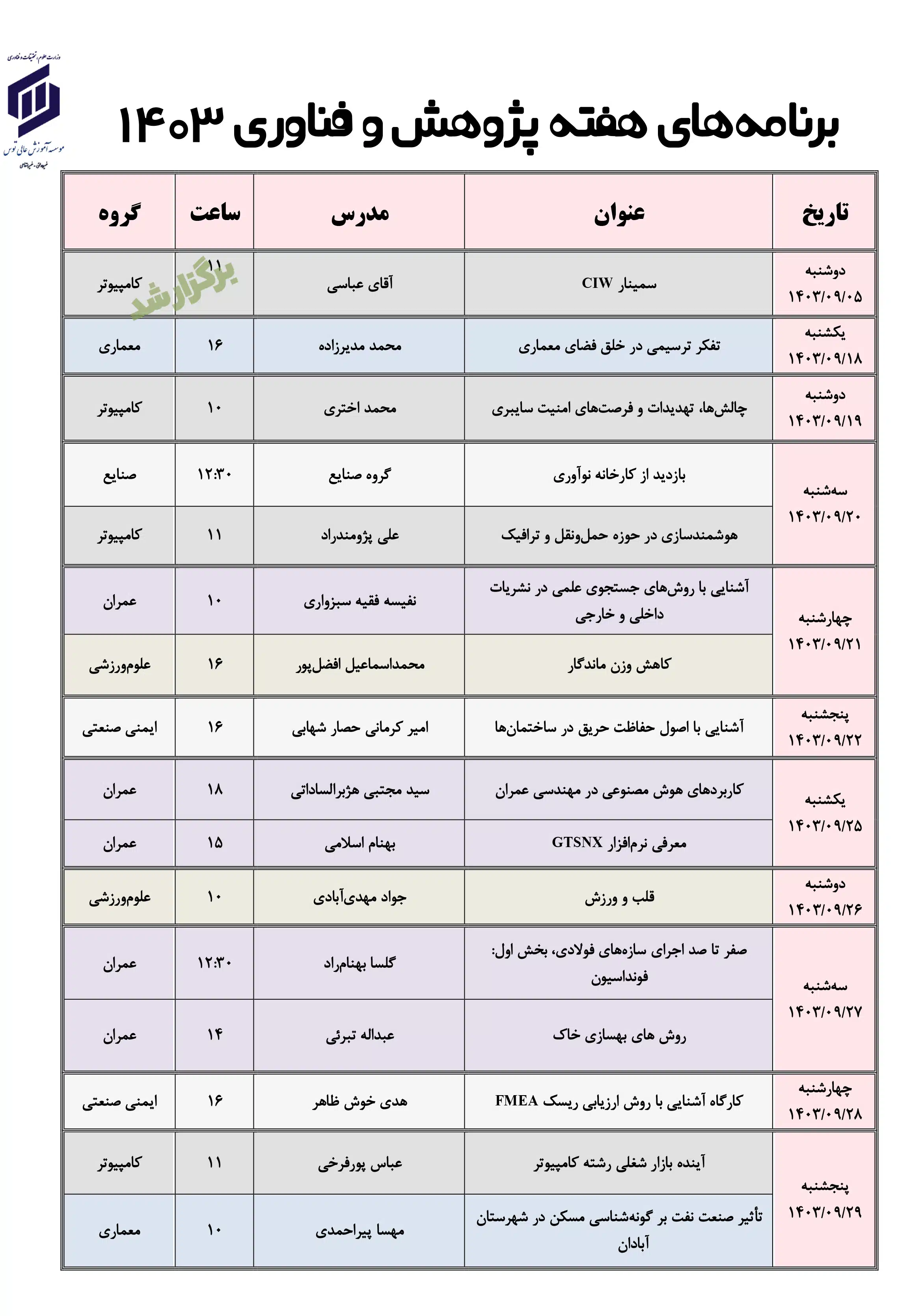برنامه سمینارهای هفته پژوهش-آذرماه 1403