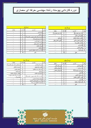چارت درسی رشته مهندسی حرفه ای معماری مقطع کارشناسی ناپیوسته