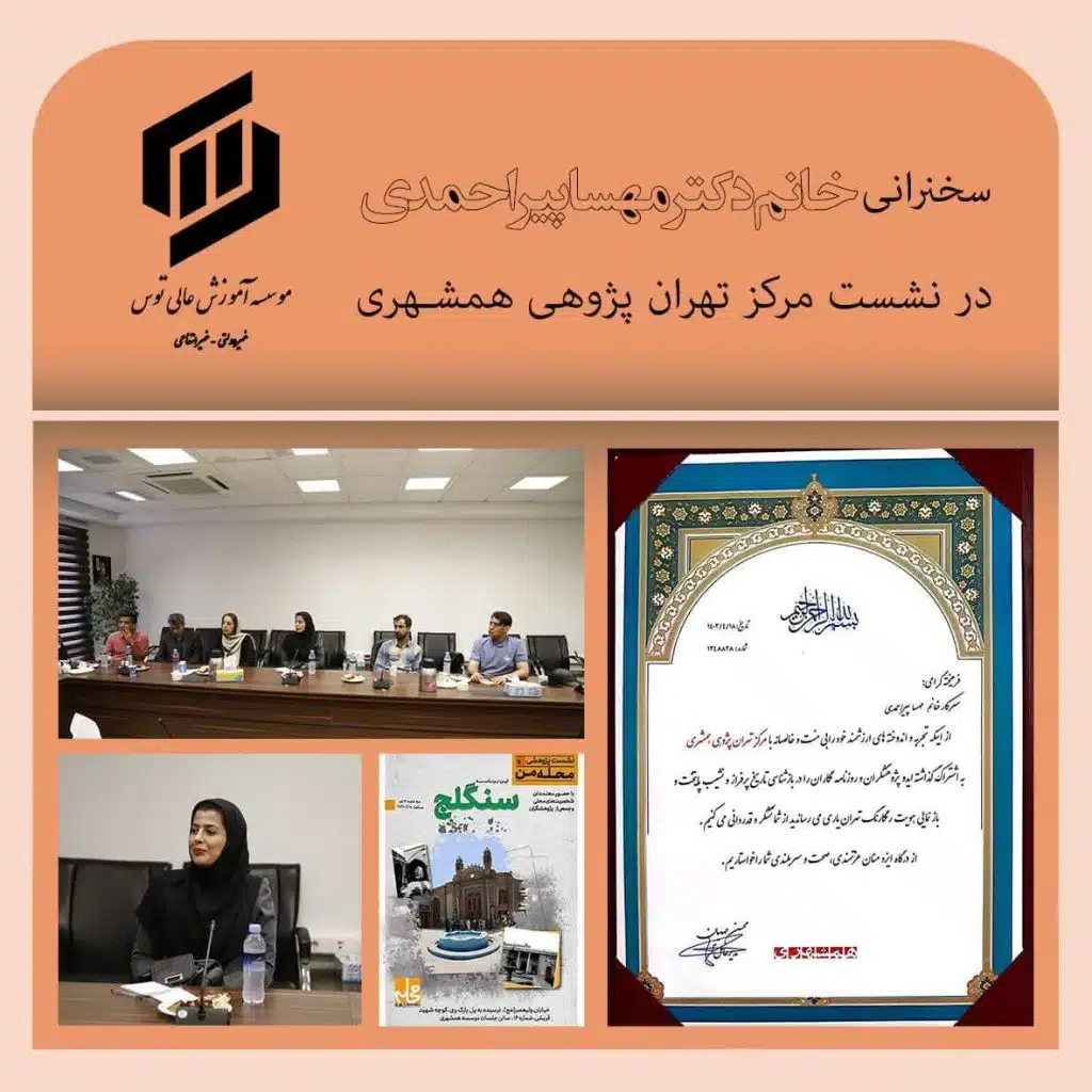 سخنرانی خانم دکتر پیراحمدی در نشست مرکز تهران پژوهی همشهری