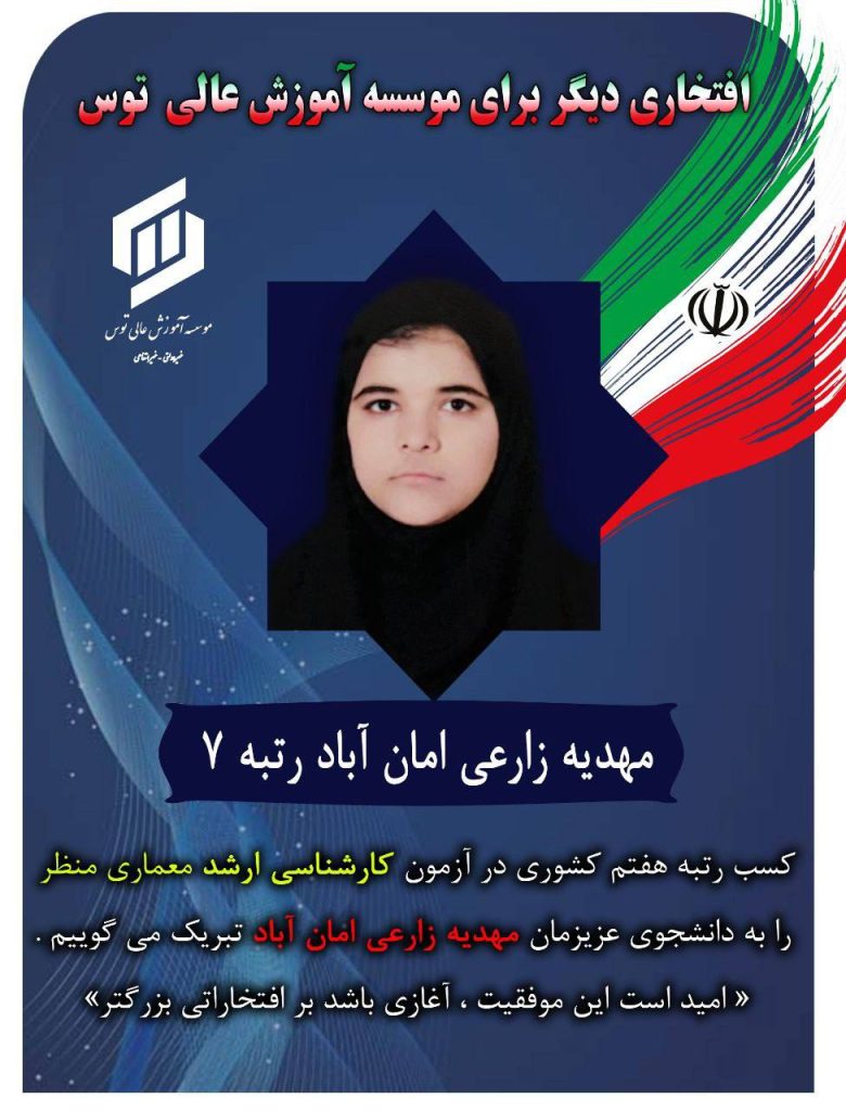 💠عرض تبریک💠 با افتخار کسب رتبه‌ درخشان ۷ کشوری در آزمون سراسری کارشناسی ارشد را به خانم مهدیه زارعی امان آباد، دانشجوی پرتلاش و افتخارآفرین گروه مهندسی معماری موسسه آموزش…