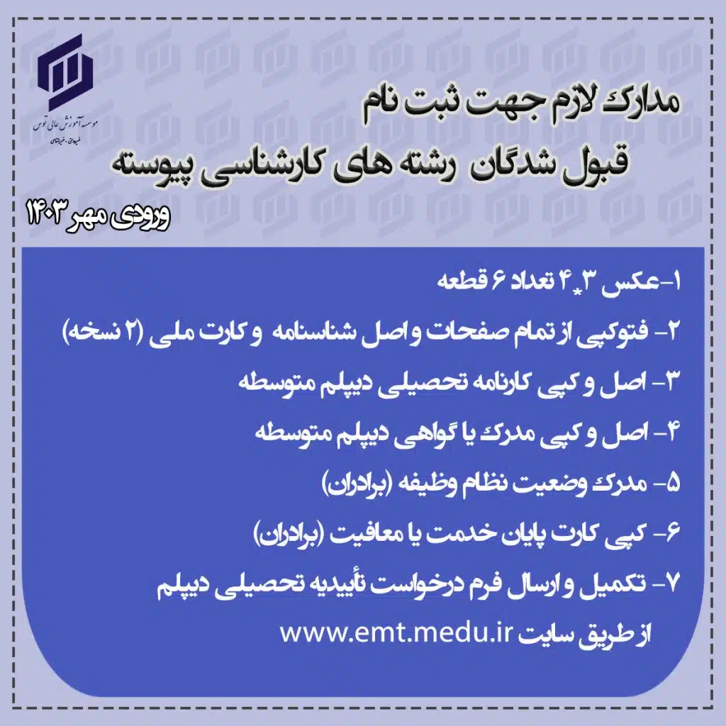 مدارک ثبت نام پذیرفته شدگان مقاطع مختلف ورودی بهمن ماه 1403 (تکمیل ظرفیت)